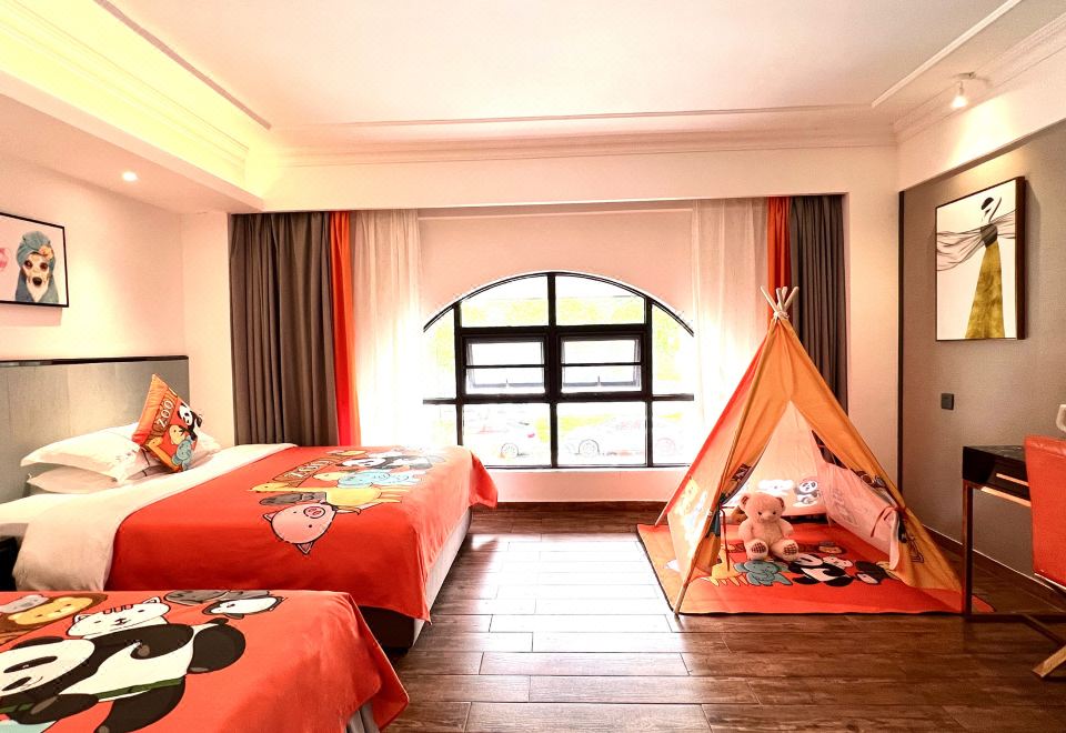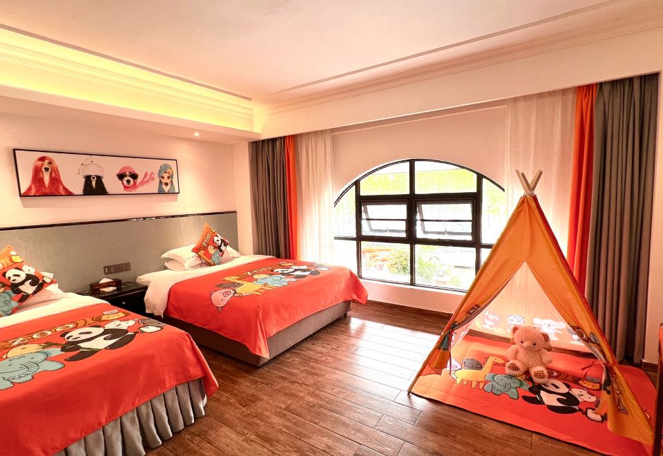 熊貓·假日院景雙床房(庭院景+床圍+小童踩腳凳)