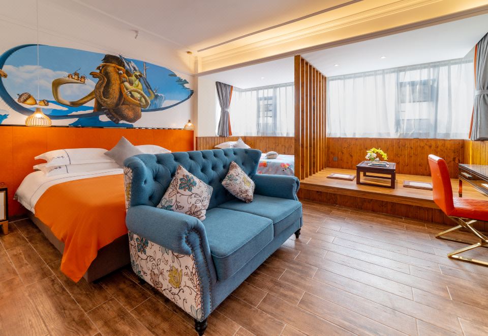 冰雪奇缘亲子房(四口之家+尊享榻榻米茶台+格力冷暖空调+观景+小童马桶圈+小童踩脚凳+床围)